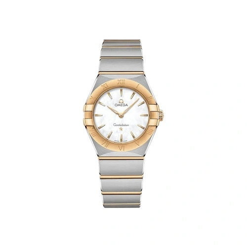 ساعت مچی امگا زنانه مدل کانسلیشن سیلور طلایی صفحه صدف OMEGA Constellation