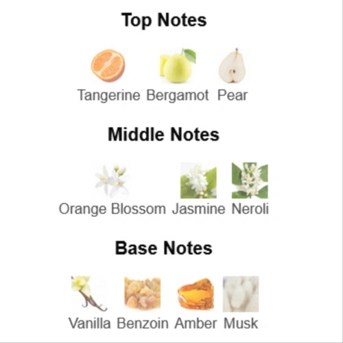 نت های میانی شکوفه پرتقال، یاس و نرولی هستند. نت های پایه عبارتند از وانیل، بنزوئین، عنبر و مشک مشابه پرادا پارادوکس (Prada Paradoxe)