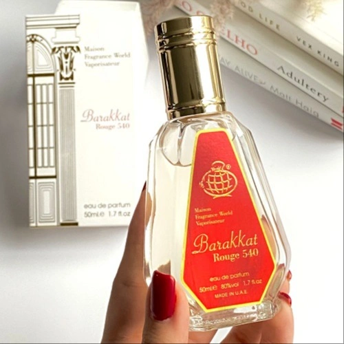 خرید عطر باراکات رژ 540 : عطر ادکلن باراکات رژ ( باکارات رژ ) در ابتدا با رایحه ی یاس و زعفران آغاز می شود پس از گذشت زمانی اندک می توانید رایحه ی عنبر کهربایی را استشمام کنید و در انتها به رایحه ی صنوبر و سرو ختم می شود. این ادکلن برای مصرف در شب های سرد سال انتخابی مناسب است. عطر یک بخش غیرقابل دیدن اما بسیار مهم و تأثیرگذار بر استایل و همچنین روی شخصیت شماست که بر دید اطرافیان و دوستان شما که با آن ها ملاقات می کنید تأثیر زیادی می تواند بگذارد. یک عطر خوب باعث می شود اعتماد به نفس شما بالا برود و نزد دیگران محبوب شوید. ادو پرفیوم فراگرنس ورد Barakkat بسیار خوشبو و بینظیر است. رایحهای دلپذیر دارد. این محصول شگفتانگیز طعم بسیار پیچیده و هماهنگی دارد که منجر به یک بانوی جذاب و آقای شیک میشود. هدیه ای مناسب جهت عزیزان شما می باشد